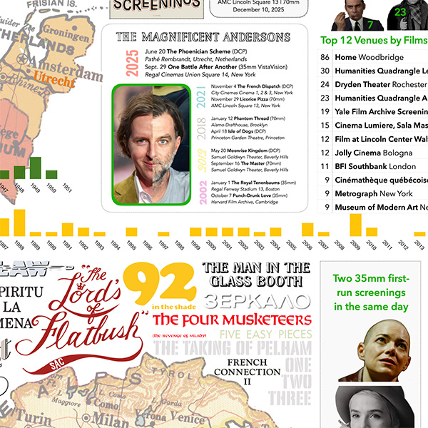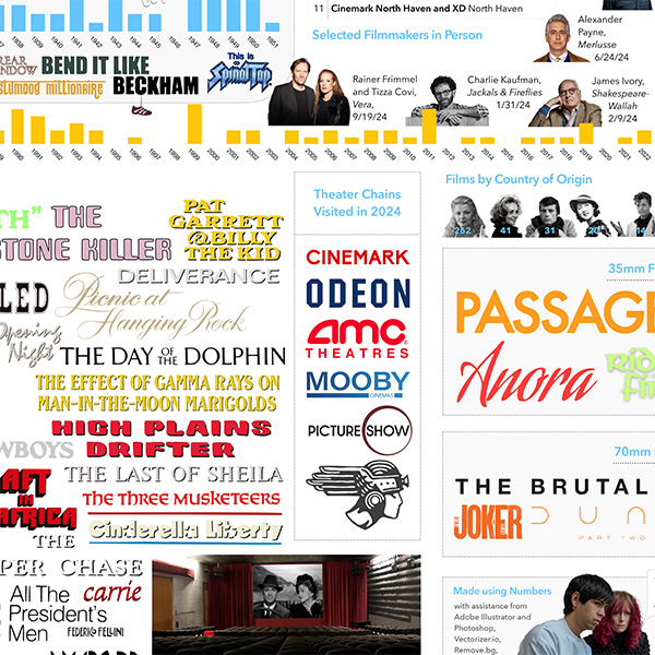 A visualization of stats, projects, screenings, and other stuff from the past year, in PDF form.